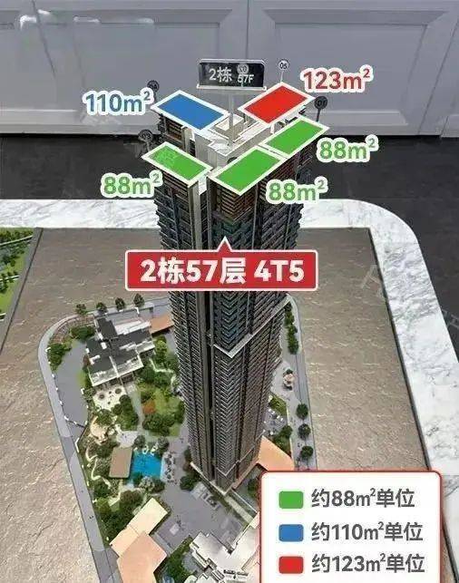 项目首推2栋,4T5,货量约260套,建面约88-110-123㎡三四房。