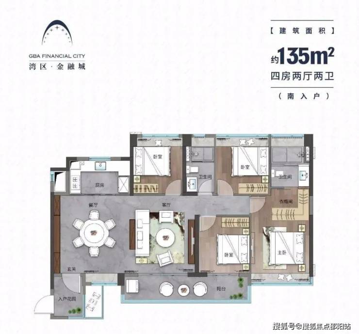 湾区·金融城提供建筑面积约**70-135㎡**的户型选择,覆盖刚需及改善型购房需求: