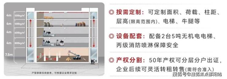 🔶 产品配置🔹 【多层定制厂房】产品:5层定制厂房 4800㎡(独栋)、8700㎡(双拼)层高:首层7.5米,2-5层4米荷载:*/1000/800/800/400/300柱距:8*8电梯:≤5000㎡1台5吨无机房货梯;>5000㎡2台5吨无机房货梯(按需定制:可定制面积、荷载、柱距,层高、电梯、牛腿等)
