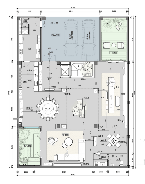 负一层下沉庭院周边设工人房、家政间,储物无忧;