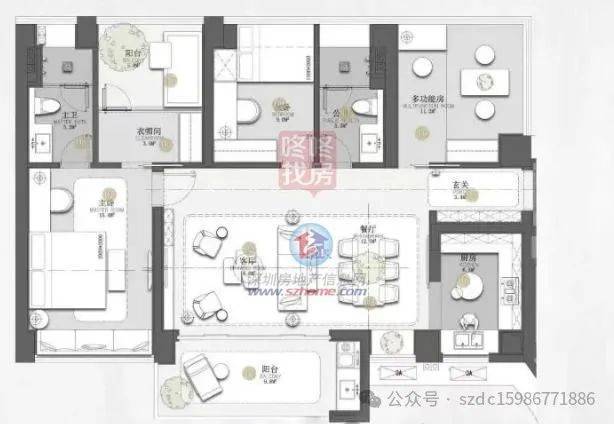 (免责说明:本项目户型使用率为基于包括阳台和飘窗在内的总面积计算得出。所提供的使用率仅供参考,实际使用面积可能会因测量方法、建筑规范等因素而有所不同。最终解释权归开发商所有。)