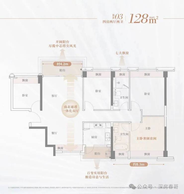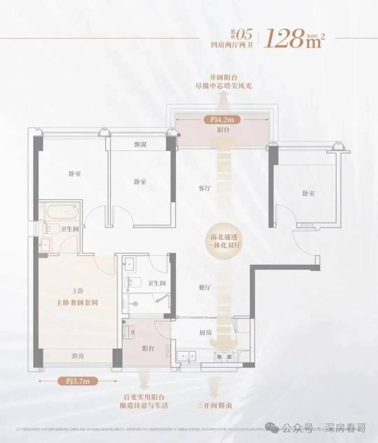 户型南北通透,采光充足。主卧配备独立卫生间和衣帽间,提升居住品质。