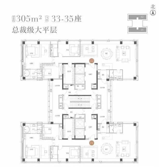 该户型注重私密性的设计。每个卧室都配备有独立的卫生间和衣帽间等设施,确保居住者的隐私和安全。
