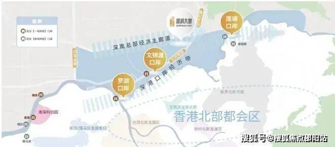 罗湖口岸、莲塘口岸、文锦渡口岸,三大口岸簇拥,链接深港