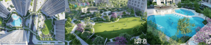 集休闲、健康、运动、社交、潮流于一体,涵盖泳池、阳光草坪、休闲水景、泛会所、香气植物花园、儿童设施等丰富配套,多种珍植全冠移植,奢享珍稀生态逸境。