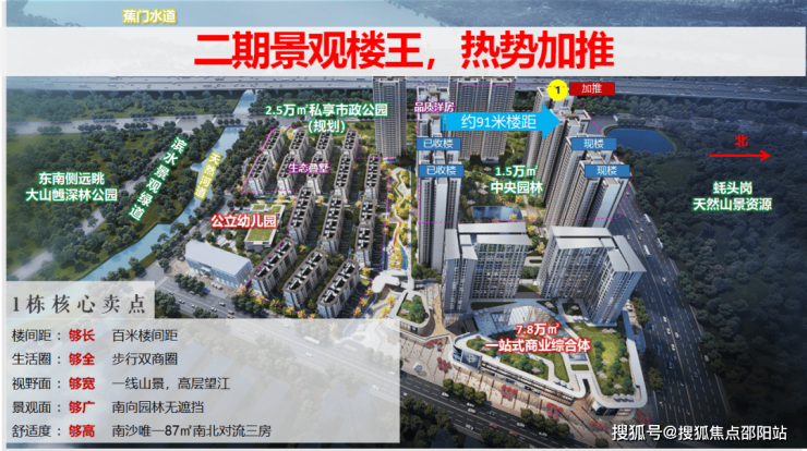 二期加推1栋景观楼王,百米楼间距,私密性强,南望园林,北望山景,高层望江。
