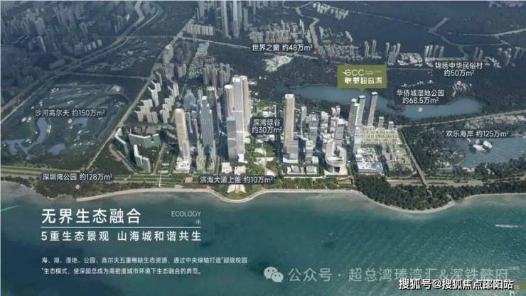 深超总拥有海、湖、湿地、公园、高尔夫五重稀缺生态资源,通过中央绿轴打造"超级校园"生态模式。滨海大道下沉,将释放约10万平方米地面空间,无缝连接深圳湾公园,形成连续的滨海公共空间。中央绿轴地下空间面积约30万平方米,投资95亿元,将建成连接地下枢纽与地面生态的超级系统。这种设计使深超总成为高密度城市环境下生态融合的典范,实现"在城市中漫步自然,在自然中享受城市"。