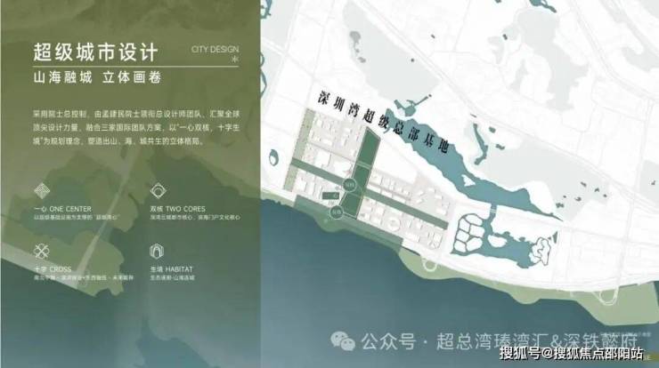 深超总采用院士总控制,由孟建民院士领衔总设计师团队,汇聚全球顶尖设计力量。其核心创新是"一心双核,十字生境"的空间结构,以中央绿轴为南北轴线,连接塘朗山与深圳湾,形成"通山达海"的生态廊道。