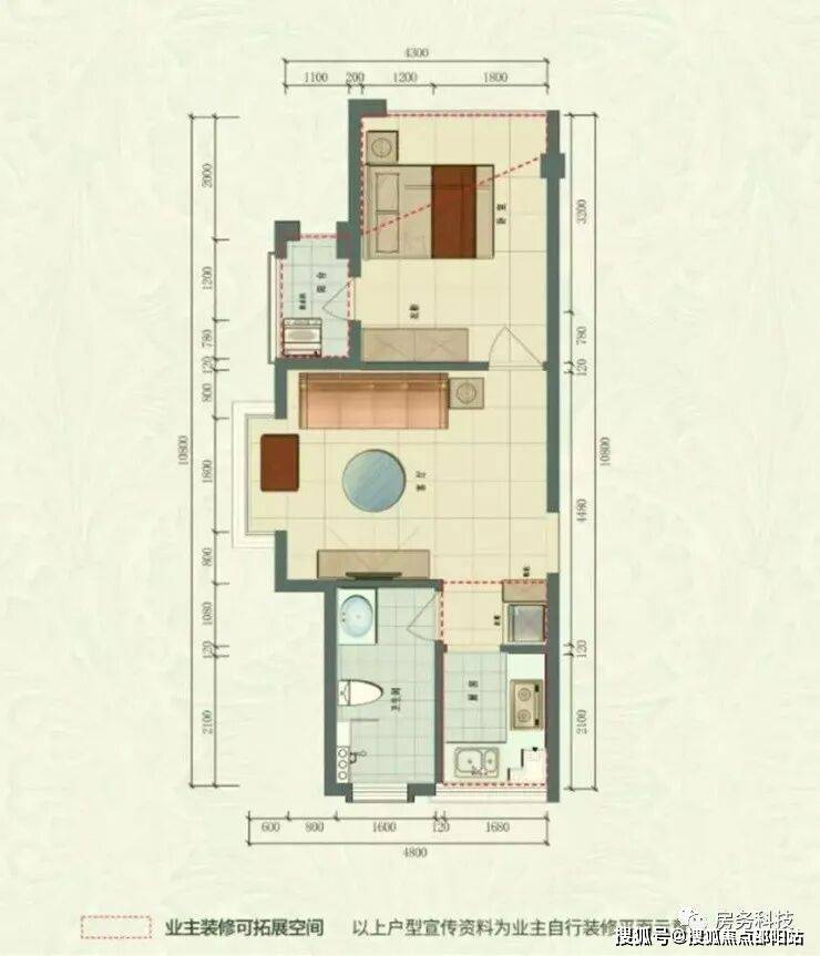 B户型 建筑面积44.88㎡一室一厅一厨一卫