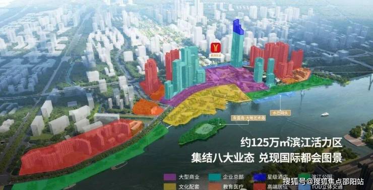 约125万㎡滨江综合体,稀缺顶级大体量华宅,8大业态城市综合体,规划有大型商业,企业总部,星级酒店,滨江公园,文化艺术中心,教育医疗配套,高端居住及TOD立体交通于一体。