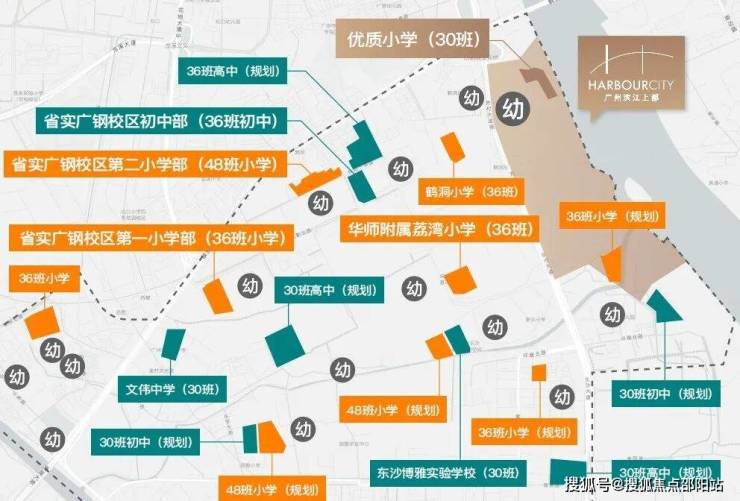 社区自建1所幼儿园+1所小学,首期将配建一所12个班幼儿园和30班优质小学广东外语外贸大学附属小学(已建成,24年9月已开学)