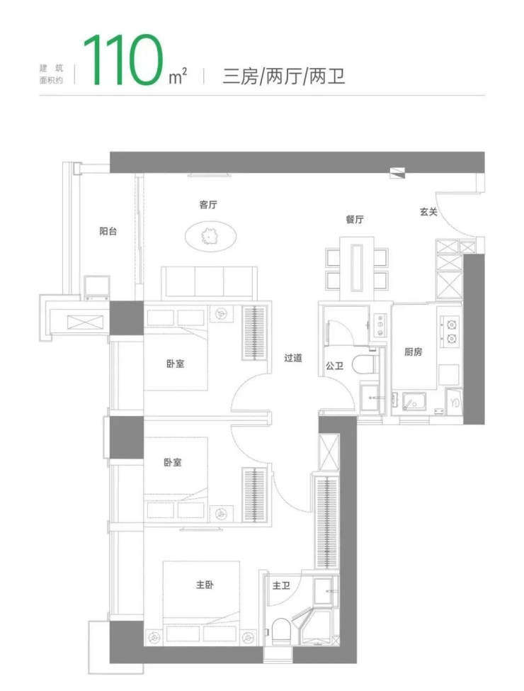 卧室标配飘窗,引入丰沛阳光,全家尽情舒展餐客一体贯通阳台,打造舒适、宽敞的欢聚天地奢享主卧,独享衣帽间、私人卫浴,自我非凡领地