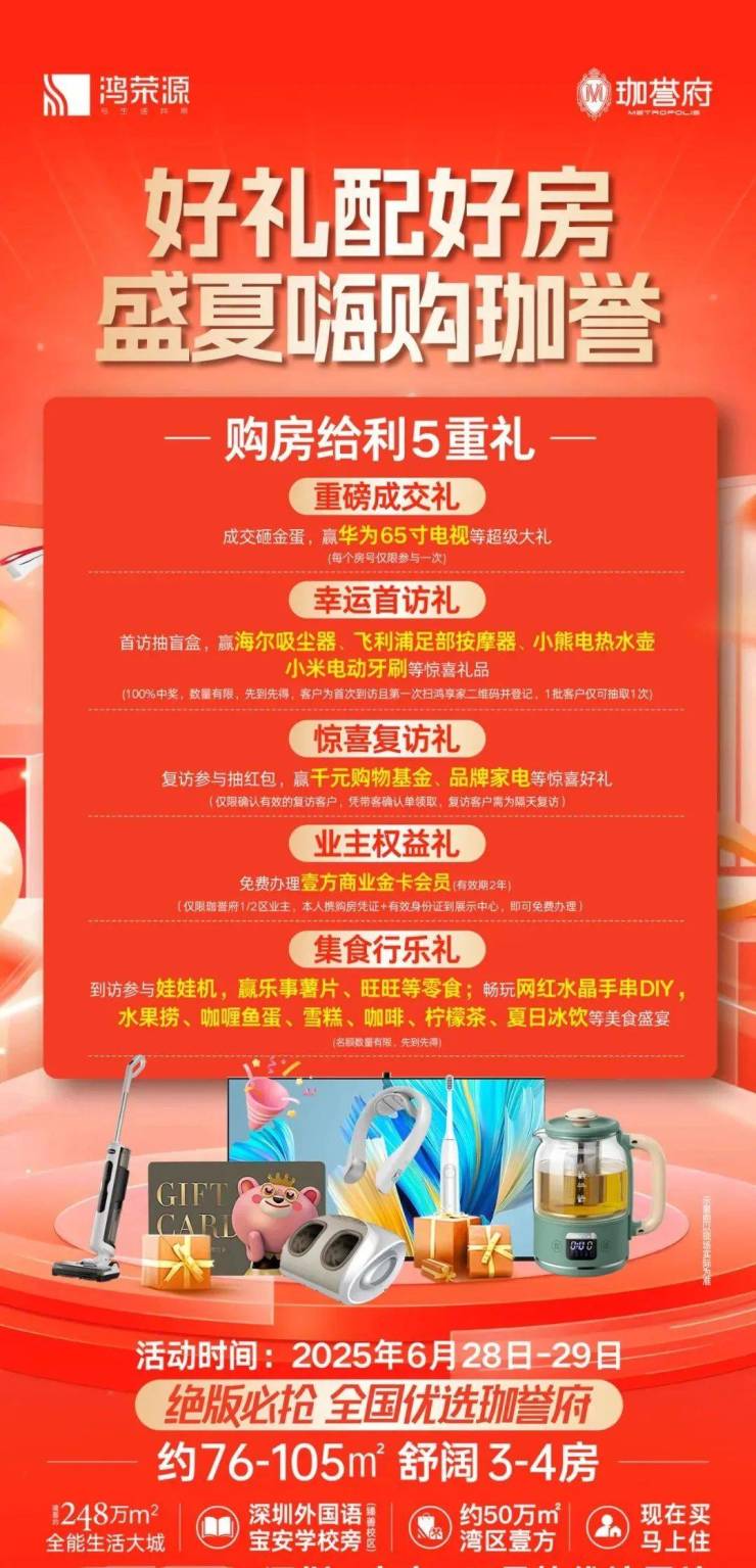 鸿荣源珈誉府规划总建面248万㎡综合体,预计一期住宅约2280套,其中76㎡258套,85㎡710套,95㎡1058套,105㎡90套,150㎡82套,180㎡82套,全龄户型,是鸿荣源集团全新开发的地标级综合大盘,涵盖住宅、酒店、大型购物中心等。