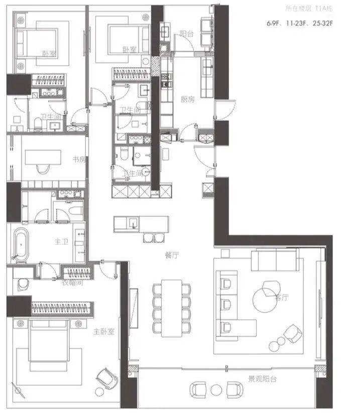 01户型 西端户 约350㎡ 四房两厅四卫
