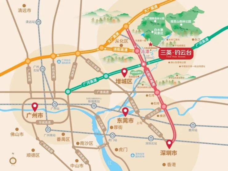三英占位粤港澳大湾区核芯区位,从莞深高速、广河高速、派街高速、大广高速、新派高速等多维交通环伺,1.5小时内自由穿梭广州、东莞、深圳、惠州、中山等核心城市,快速通达白云机场。