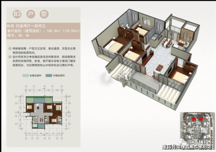 B3户型 四房两厅一厨两卫 建筑面积108.20㎡