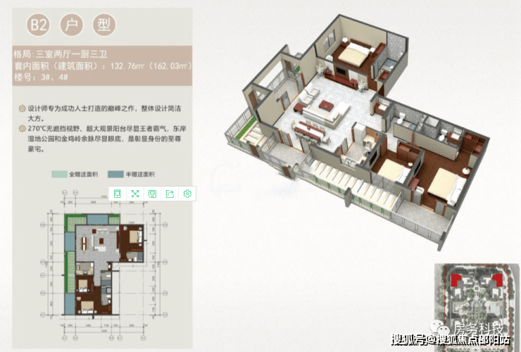B2户型 三房两厅一厨三卫 建筑面积132.76㎡