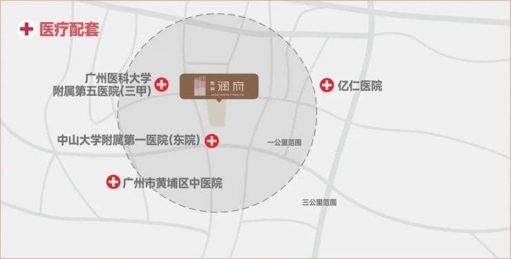2所三甲医院:中大附属第一医院(三甲)约500米,广医大附属第五医院(三甲)约1.2KM