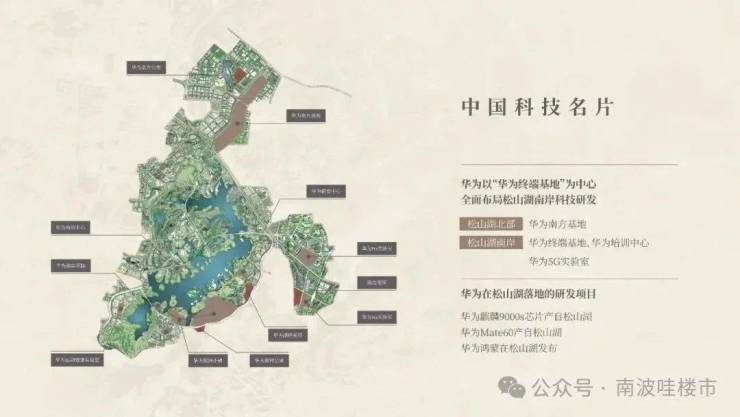 华为以“终端基地”为核心,布局松山湖南岸:华为欧洲小镇、华为培训中心、华为5G实验室、华为研发中心、华为运动健康实验室