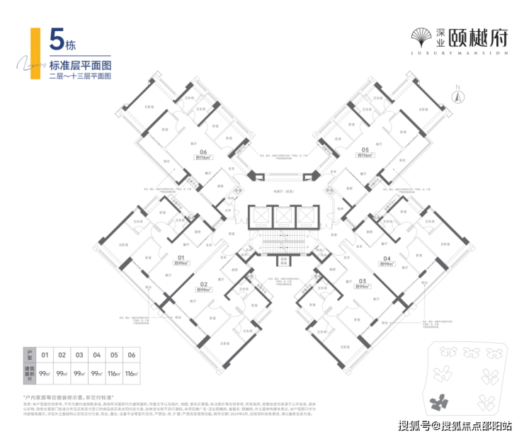 户型实用:主力户型为99-116㎡的3-4房,户型方正实用,户户朝南,采光舒适,大阳台设计增加了景观面和使用空间,得房率较高(不含赠送约77%-80%)。