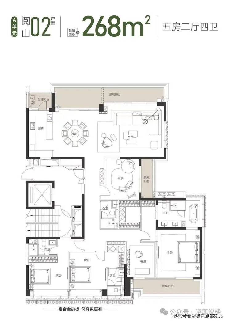 • 268㎡ 5房4卫(大平层,纯板楼,圈层优选,总价约2800万+)