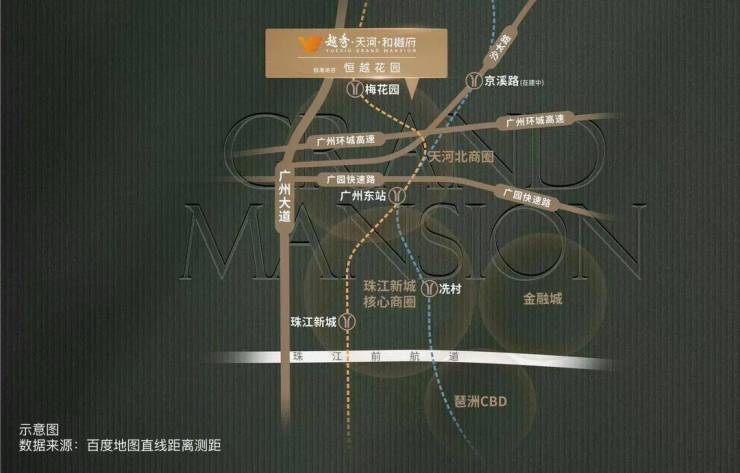 越秀天河和樾府项目位于广州城市中轴,天河北板块,距离珠江新城直线距离仅5公里,一路串联广州大道北、天河北、珠江新城等商圈