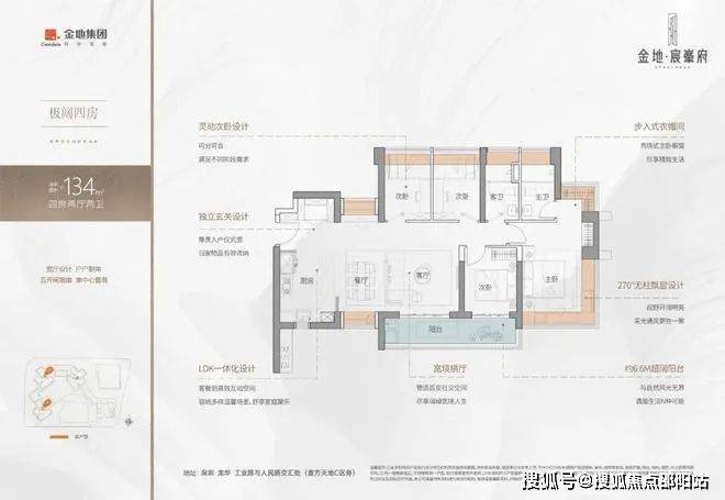 -134㎡四房两厅两卫:横厅户型,南北通透。超大的步入式玄关+超阔客厅空间+超6.5米超阔阳台,带来比肩市面上200㎡大平层的豪宅气度。可开可合的儿童房,中间特意设计为非承重墙,能够灵活满足多胎家庭不同时期的成长需求。