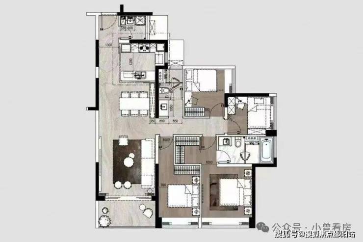140平方米的户型则有横厅和竖厅两种布局可供选择,空间利用更加灵活;