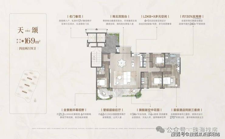 四代洋房·奢享写意人生 | 双入户大堂、一梯一户,稀缺至高约130%实用率(不含电梯厅),6面朝南,270°环幕采光,定制约6m错层空中浮岛,奢享墅质生活