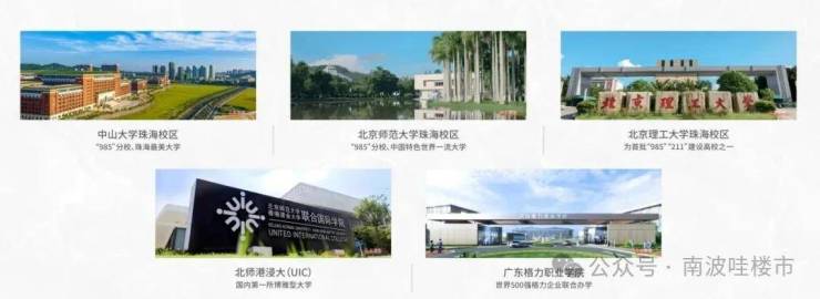 区域承载文脉底蕴,汇聚3所985高校、1所内地联合港澳台办学等共5所高校,已然成为珠海“学历第一高”区域,进一步坐实“珠海大学城”称号。