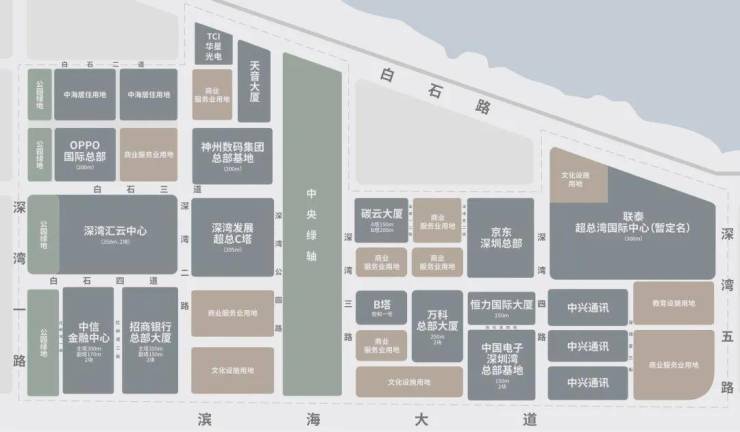 深圳湾超级总部基地(简称深超总)位于深圳市域核心地段,与香港隔海相望,是招商银行、中国电子、万科集团等世界500强企业总部。总占地面积117公顷,建筑面积约520万㎡,规划就业人口约30万,由深圳地铁集团和万科集团联合开发。