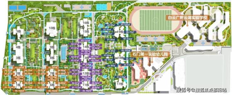 白云广附(广州市白云区白云广附云湖实验学校)就在小区里,白云湖第一所名校,有30班小学,18班初中,属于九年一贯制学校,2024年9月开到2年级,初二,逐年往上升。