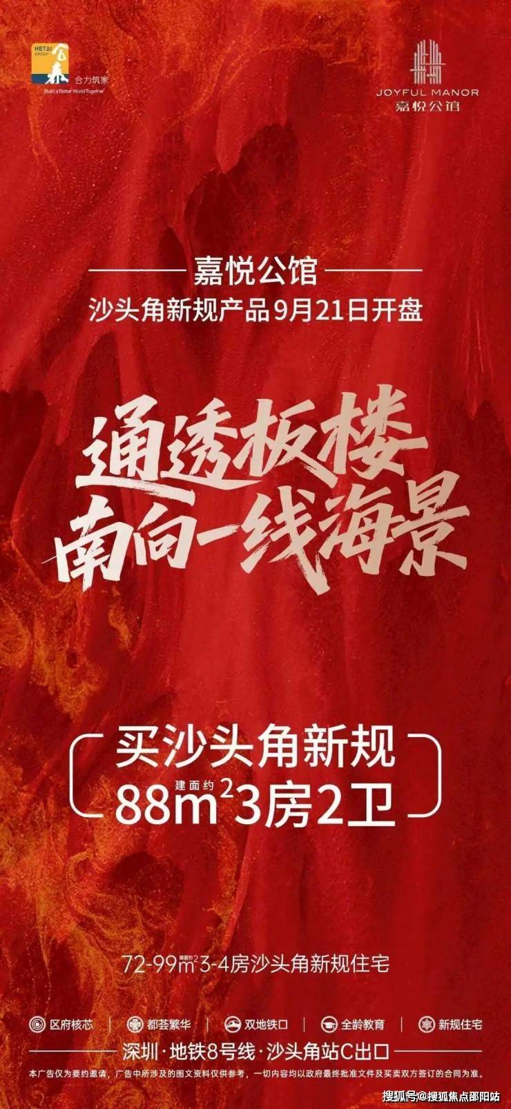 嘉悦公馆,位于盐田区沙头角街道核心区域,紧邻地铁8号线沙头角站C口,步行距离约700米,5分钟可达。项目背靠梧桐山生态屏障,南眺19.5公里大鹏湾海岸线,部分高楼层户型可享"山海双景",负氧离子浓度常年高于外区60%,空气质量优良率达100%。