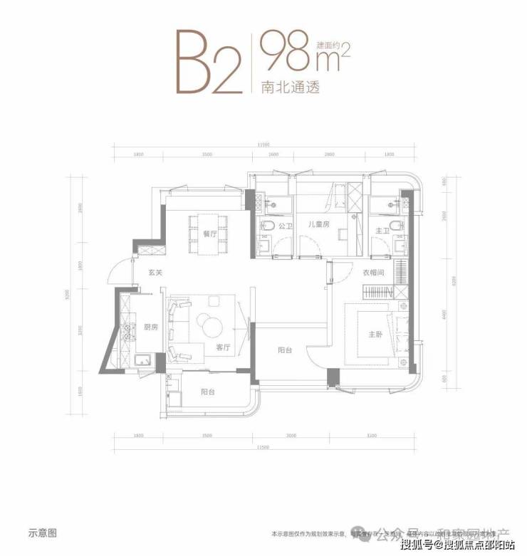 南北通透建面约98㎡户型