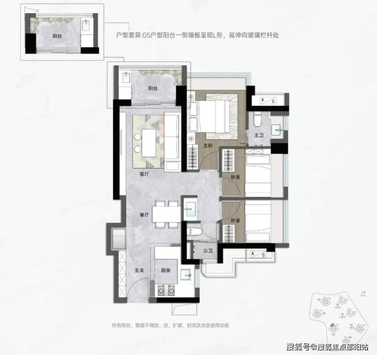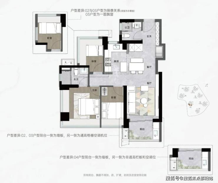 入门级的就是片区内罕有的约83㎡三房两卫,同样拥有主卧套房的私密、双次卧的方正和全屋飘窗,对二胎非常友好。
