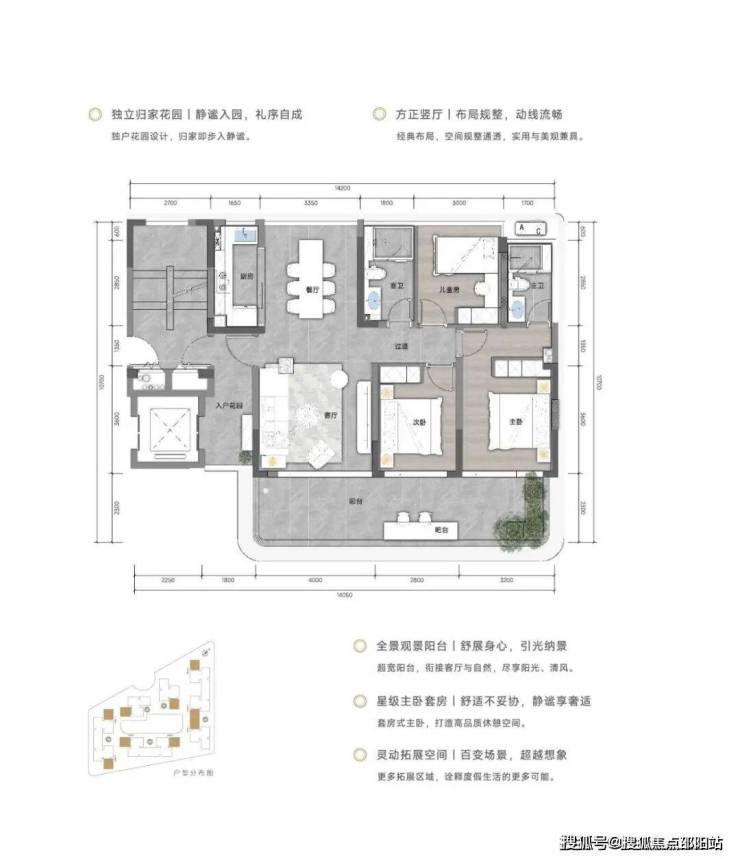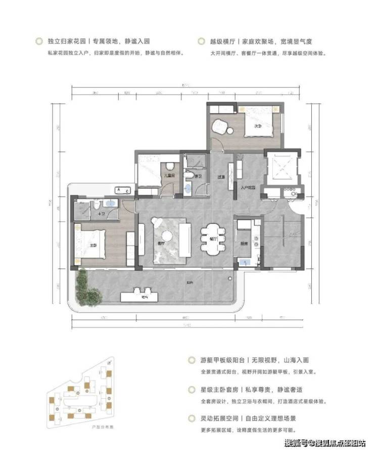 【户型格局】大阳台+奢阔横厅的户型设计,超高窗墙比