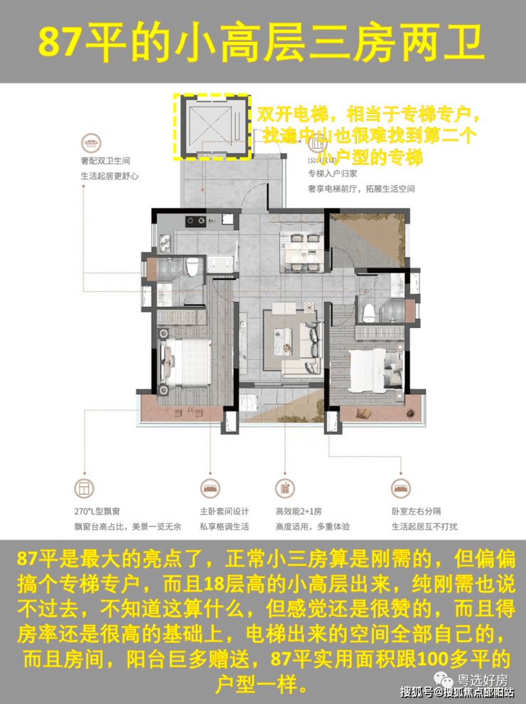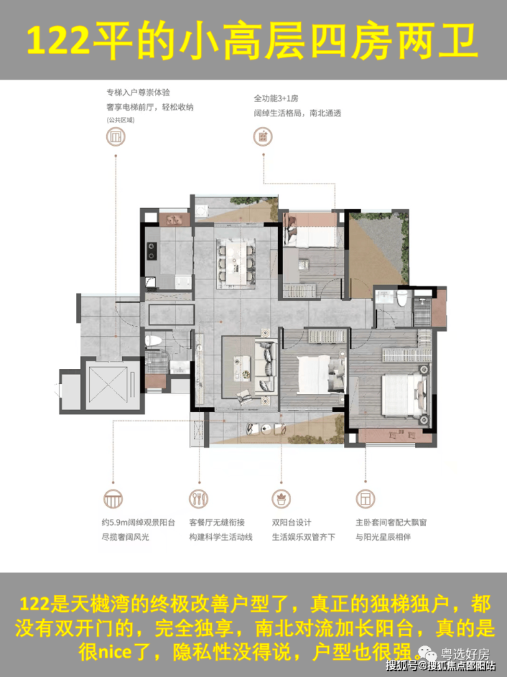 天樾湾最大的优势第一个得房率高,第二个是有专梯专户的小户型,定位更多是刚需为主,对比邻近的公园四季,越秀最大的优势是性价比,所以也注定了吸引的人群不一样。