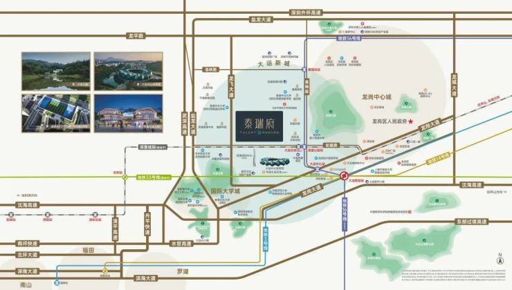 地铁:紧邻地铁16号线龙城公园站(约600米),2站大运枢纽。未来地铁深惠城际(建设中)在此交汇,4站深圳北枢纽、5站西丽、8站前海;