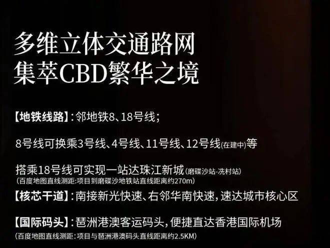 地铁:项目毗邻8/18 号线磨碟沙站,18 号线1 站直达珠江新城商圈;