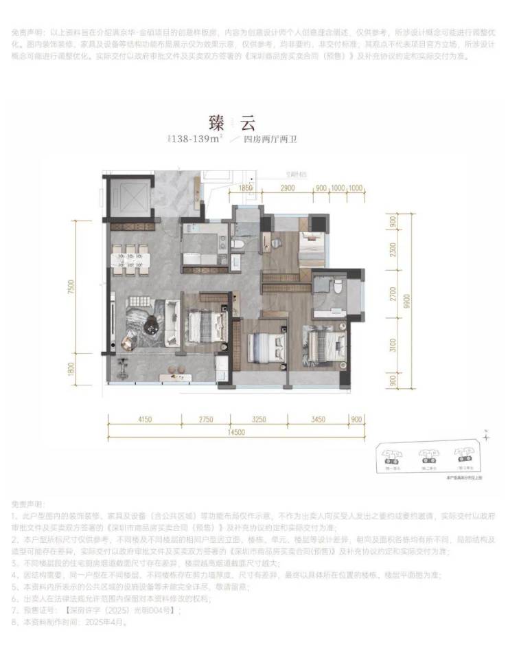 建面约138-139㎡四房两卫 专梯入户