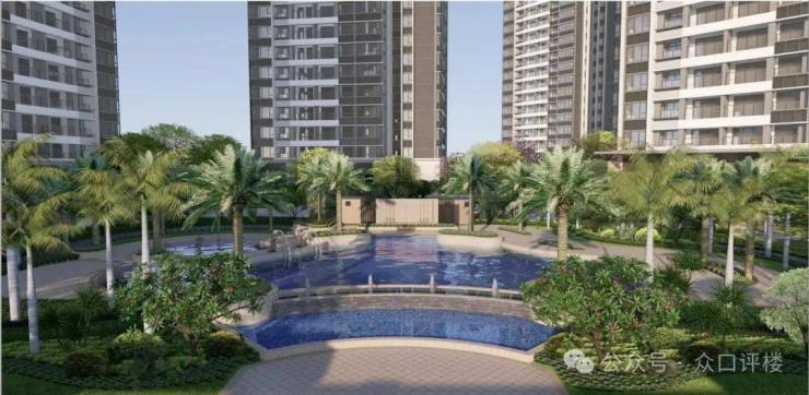项目主入口雄狮危坐、入口跌水景观、小区内部泳池,搭配周边景观绿化,水景绿植递进承接,营造亲自然式生活氛围。