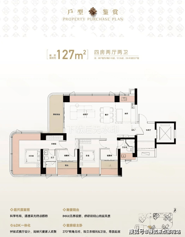 区域纯粹改善平层产品,以约125㎡-185㎡奢阔空间填补市场空白。