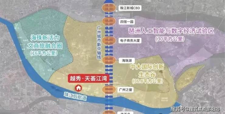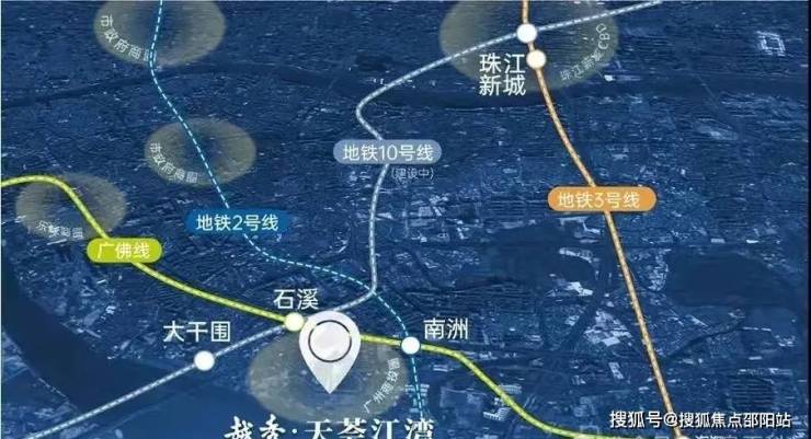 项目位于海珠区广州地铁2号线和广佛线的南洲 站交汇处附近;地处粤港澳大湾区中轴,正构建“一区一谷一湾”( 东部建设琶洲试验区、中部建设中大国际创新生态谷、西部建设海珠新活力文商旅融合圈)创新发展新格局的海珠创新湾。未来将打造为集文化创意、都市旅游、人工智能、总部创新办公等产业于一体的服务经济价值提升带,形成滨水创新走廊,拥有接近10公里的黄金岸线稀缺资源,广州城央江景豪宅大盘模式绝版,未来价值比肩珠江新城。
