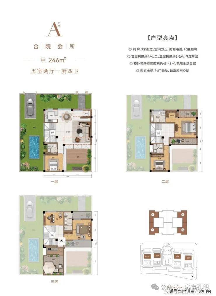产品户型:建面约276㎡企业级大平层、建面约231-245㎡花园式企业合院