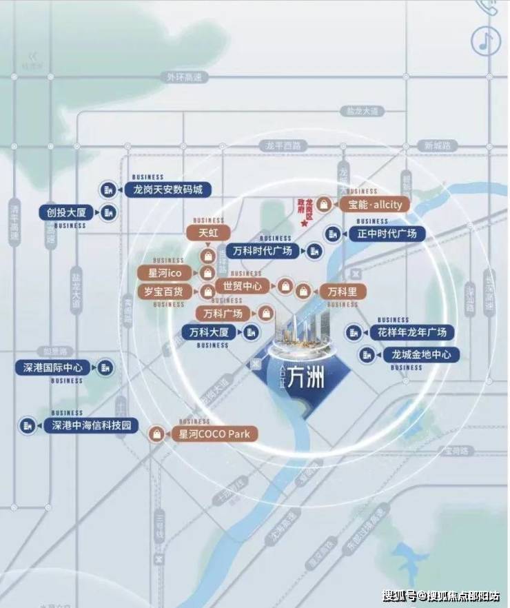 龙岗中心城,180万㎡建面滨水大盘:合正方洲区位优越:楼盘位处龙岗中心城板块,拥有龙岗最好的配套,住宅区距离3号线吉祥站800米,且挨着龙岗大道,沈海高速500米,无论自驾还是公共交通,通行全城便利;大社区,生态宜居:180万㎡建面大盘,融合产业、商业、居住、教育于一体,其中旗舰级商业携手华润万象生活打造,并与龙岗河生态碧道、人文休闲场景等公共场地充分融合,营造多元化的生活空间场景(龙岗河穿流而过,项目为深圳唯一的“一河两岸”亲水社区,享有近一公里的优质滨水生态资源)。