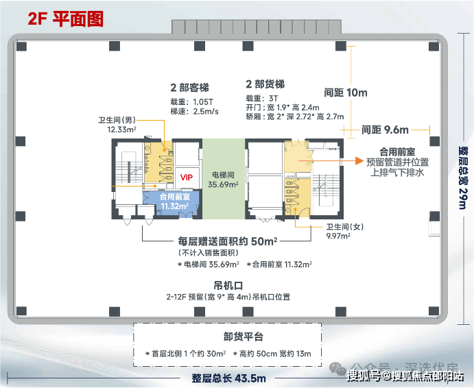 【赠送面积】每层赠送面积约50㎡(电梯厅+1个合用前室)