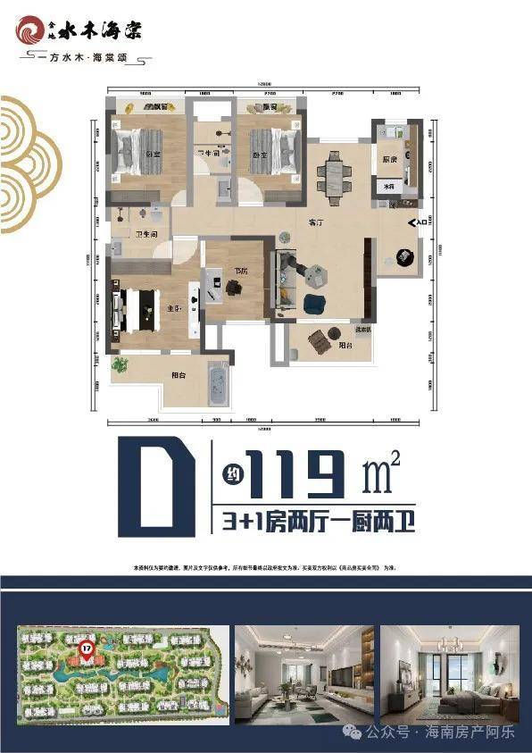 建筑面积约119㎡;3+1室 2厅 1厨 2卫 大阳台 入户泡池