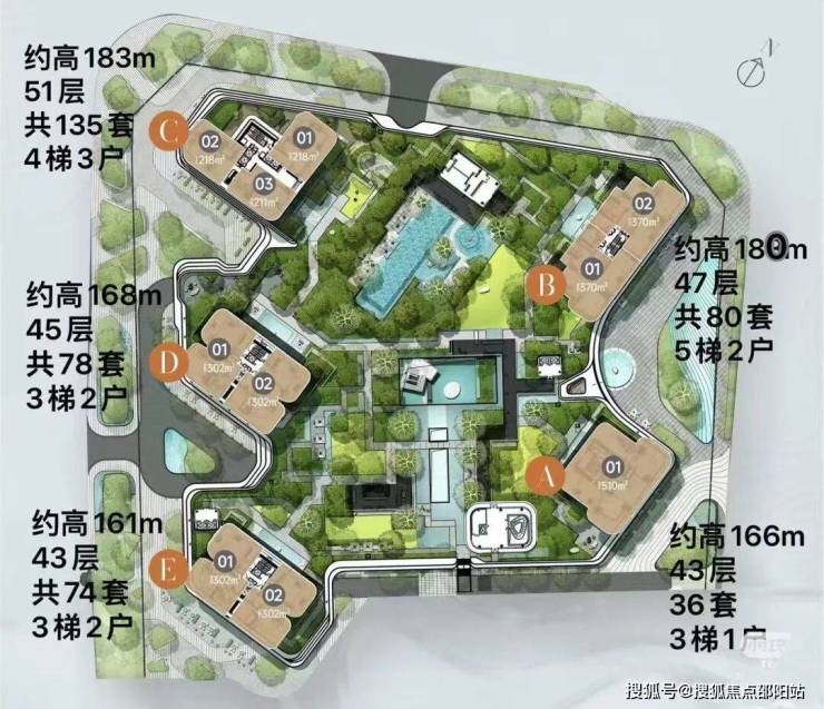 E栋302平南向是71.75米高的歌剧院,越过歌剧院要20层以上。歌剧院主体呈高低起伏波浪形状,所以低楼层也会有部分景观,不会完全被遮挡。