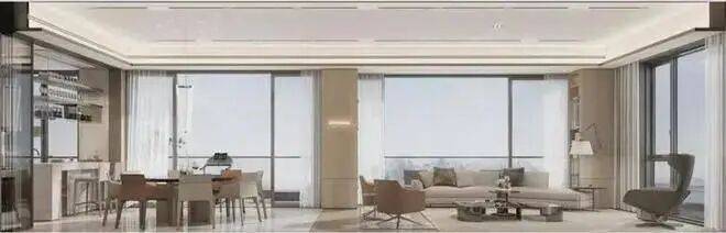 南北四阳台设计,打造270°全景视野,将周边景观资源直接引入室内,创造“有限空间见无限景观”的效果。