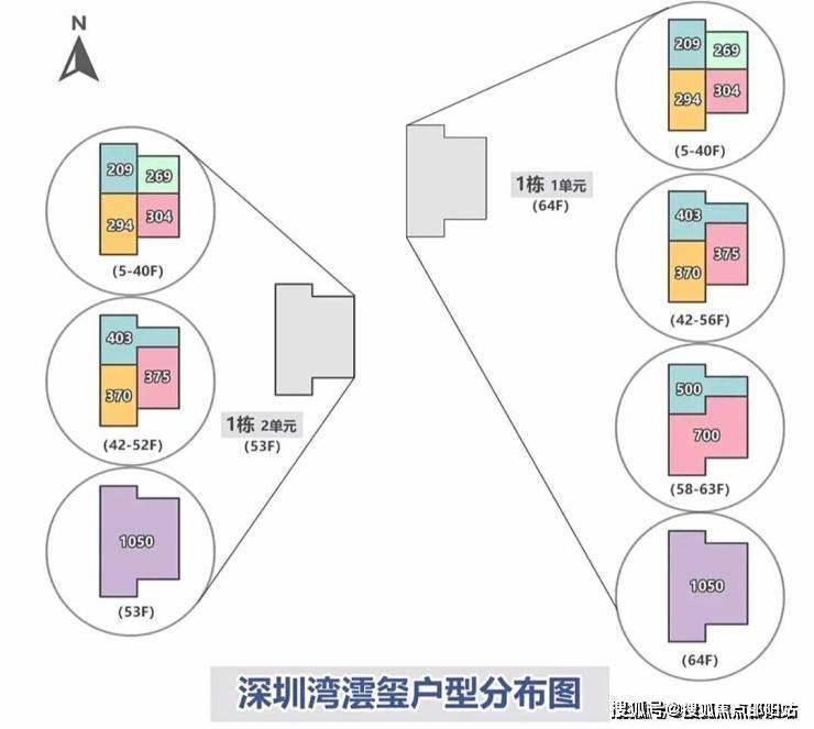 项目首推北区1-2栋共348套房源,户型覆盖209-1100㎡,全部四房三卫起步,彻底告别刚需化设计,保证了圈层的纯粹性。其中,高区58层以上为500-700㎡的顶级大平层,顶楼1100㎡的顶奢大平层仅2套,总价从3000万起,顶楼更是高达4-5亿,单价区间在14-46万/㎡,精准锁定金字塔尖客群。